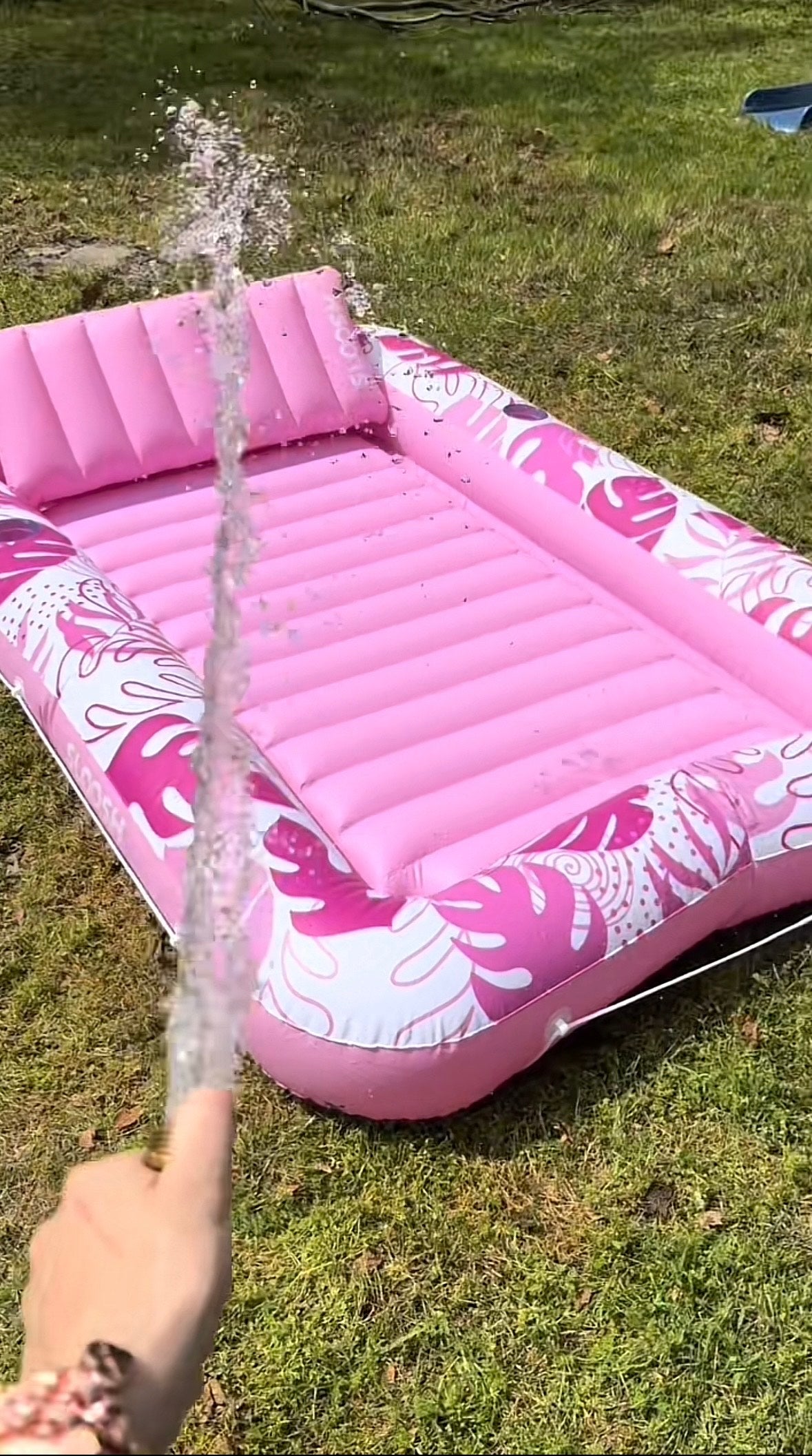 I used this tanning water bed every day last week and it stays so cool, even in direct sun. Super comfy and easy to inflate. Love it!